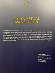 Resulta llamativo el hecho de que precisamente una carta astral haya sido la artífice de esta exposición, ya que “la carta astral que André Breton (1896-1966), fundador del movimiento surrealista, elaboró para el poeta y escritor Jean Schuster (1929-1995), … tras su donación … forma parte del acervo del MUNAL”. 1 Debido a esto, el museo dio una nueva presentación a su colección regalándonos así esta maravillosa exposición.
