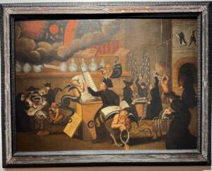 En esta muestra, encontramos personajes como Francisco I. Madero, quien fue espiritista, médium escribiente (es decir, el espíritu se apodera del brazo y pensamiento del médium y escribe aquello que desea comunicar) de quien tenemos un retrato en la exposición, también admiramos obras de Germán Gedovius vanguardista de la pintura mexicana, nos acercamos a Los Caprichos, grabados de Francisco de Goya y Lucientes, en los cuales hace una crítica a la clase alta y sus vicios; el espiritismo y la nigromancia tienen representación con varias obras, entre ellas Los Espiritistas del pintor Juan Téllez Toledo.