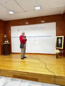 En su bienvenida al grupo, fray Melchor Benito B., nuestro rector, nos dijo entre otras cosas que, como cristianos, no estamos dando el testimonio que debemos dar, nos perdemos de las oportunidades que el Señor nos brinda para demostrar nuestro amor al prójimo; asimismo nos animó a reunirnos en torno a la Iglesia ya que la convivencia crea y refuerza lazos espirituales y fortalece la comunidad.