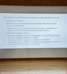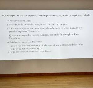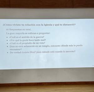 Se dio a conocer el resumen de una encuesta realizada a personas que se desenvuelven en el área geográfica de Santa Mónica. Uno de los puntos centrales fue el reconocimiento de que muchas personas—vecinos, familiares, conocidos—se han alejado de la Iglesia por diversas razones: experiencias dolorosas, incomprensión, indiferencia, desconfianza, crisis personales, ritmos de vida acelerados o falta de acompañamiento.