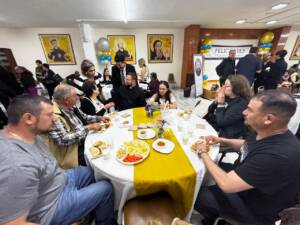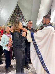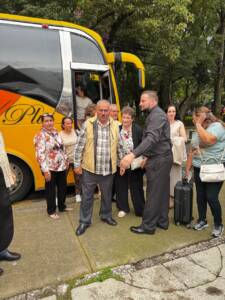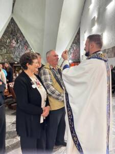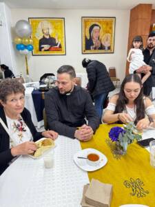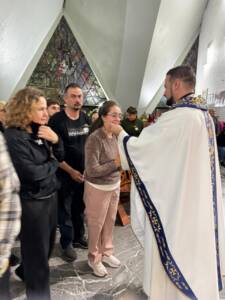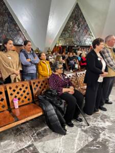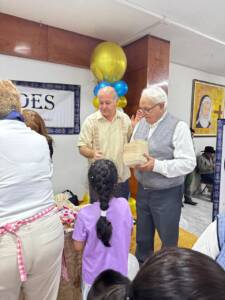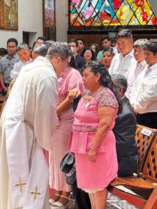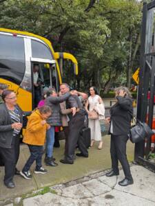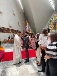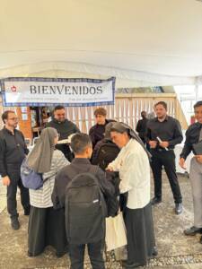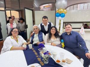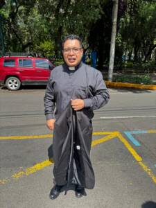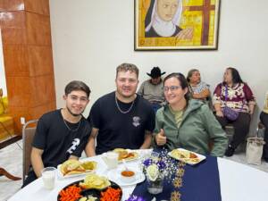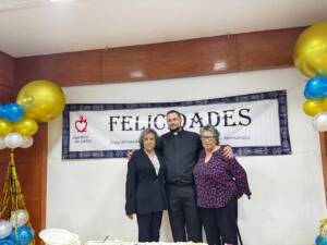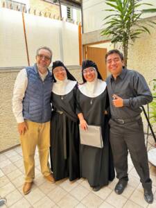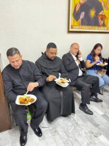 Mención especial a Monseñor Acero, a fray Martín Luengo y varios frailes más, así como a la familia de fray José Antonio, que tuvieron la delicadeza de esperar la llegada de la familia de fray Bernardo, ¡la cual llegó después de un viaje de 18 horas! La recepción fue sensacional, hicimos valla y entre gritos de júbilo y porras (que así se denomina en México, a un grito de alegría que se hace en grupo para reconocer y/o animar a una persona o grupo de personas) fray Bernardo recibió a su familia, inmediatamente pasaron al salón San Agustín, comieron y las dos familias juntas cantaron Las Mañanitas a nuestros flamantes sacerdotes y compartieron una rebanada de delicioso pastel.