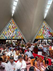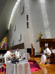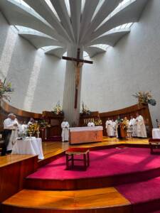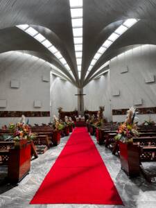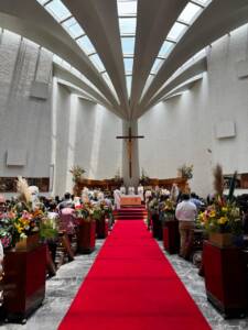 En el atrio recibimos a los invitados de los frailes, los cuales procedían del estado de México y Jalisco, que vieron nacer a fray José Antonio y a fray Bernardo respectivamente; el templo reluciente, como lo merecía la ocasión y profusamente adornado con bellas y frescas flores, estaba poblado de mucha gente nueva y también de caras conocidas, todas ellas hermanadas ante el importante acontecimiento que íbamos a presenciar.