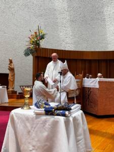 Por último, el rito complementario comprende la investidura de los ornamentos sacerdotales, unción de las manos, lo cual hace el obispo, ungiendo con el santo crisma a los ordenandos y esto señala que los nuevos ordenados son otro Cristo, el obispo mismo entrega a los nuevos sacerdotes el cáliz y la patena con el vino y el pan respectivamente, lo que indica que el sacerdote está ordenado para celebrar el sacrificio eucarístico y que él mismo participa en el sufrimiento y la cruz redentora del Señor. Por último se da el abrazo de la paz, los nuevos sacerdotes se acercaron a Monseñor Acero y recibieron de él el abrazo y el beso de la paz.